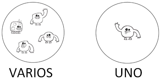 Estimar 4 | Realizar estimaciones de cantidad con números naturales: Uno – Varios. Te presentamos unas fichas con divertidos personajes en las que tienes que reconocer e identificar las cantidades “uno” (una unidad) y “varios” (más de una unidad) | |||||||
